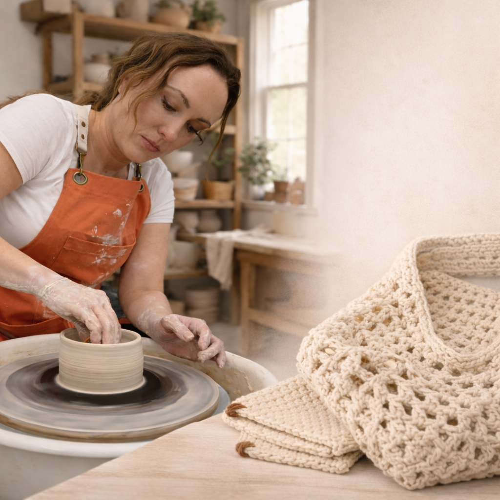 Hook & Hearth is rooted in tradition and crafted by hand. From clay to yarn, each piece is thoughtfully made to bring warmth and function into your home